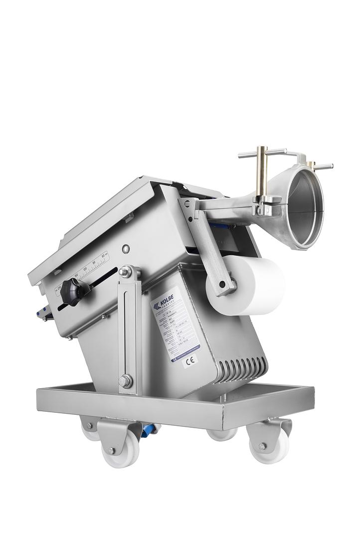 De Kolbe portioneerder voor porties gehakt is geschikt voor schalen. De portioneerder wordt het best gebruikt voor de productie van gehakt in supermarkten en kleine slagerijen, waar meestal kleine hoeveelheden worden geportioneerd. Portiegroottes van 300g tot 800g, evenals de lengte van de huidloze worsten, kunnen traploos worden ingesteld. Neem een